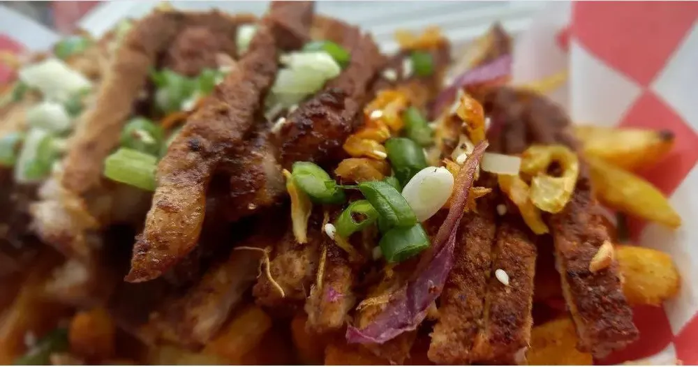 Prepared in a convectional air fryer and served wit hot crispy french fries. Heat level is a solid 6.5/10.